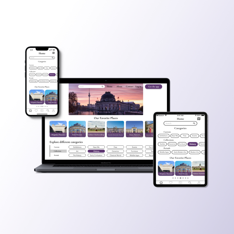 Location-based app concept for Berlin’s museums, giving visitors one place to explore museums and exhibitions across the city.